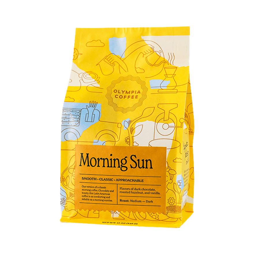 Morning Sun is Olympia’s darkest roast yet. but you won’t find any smoky flavours here—it’s like a warm. chocolatey hug or a caramel summer sunrise. Made with love by family farmers high up in the Colombian Andes. An everyday hit sipped black or with milk.